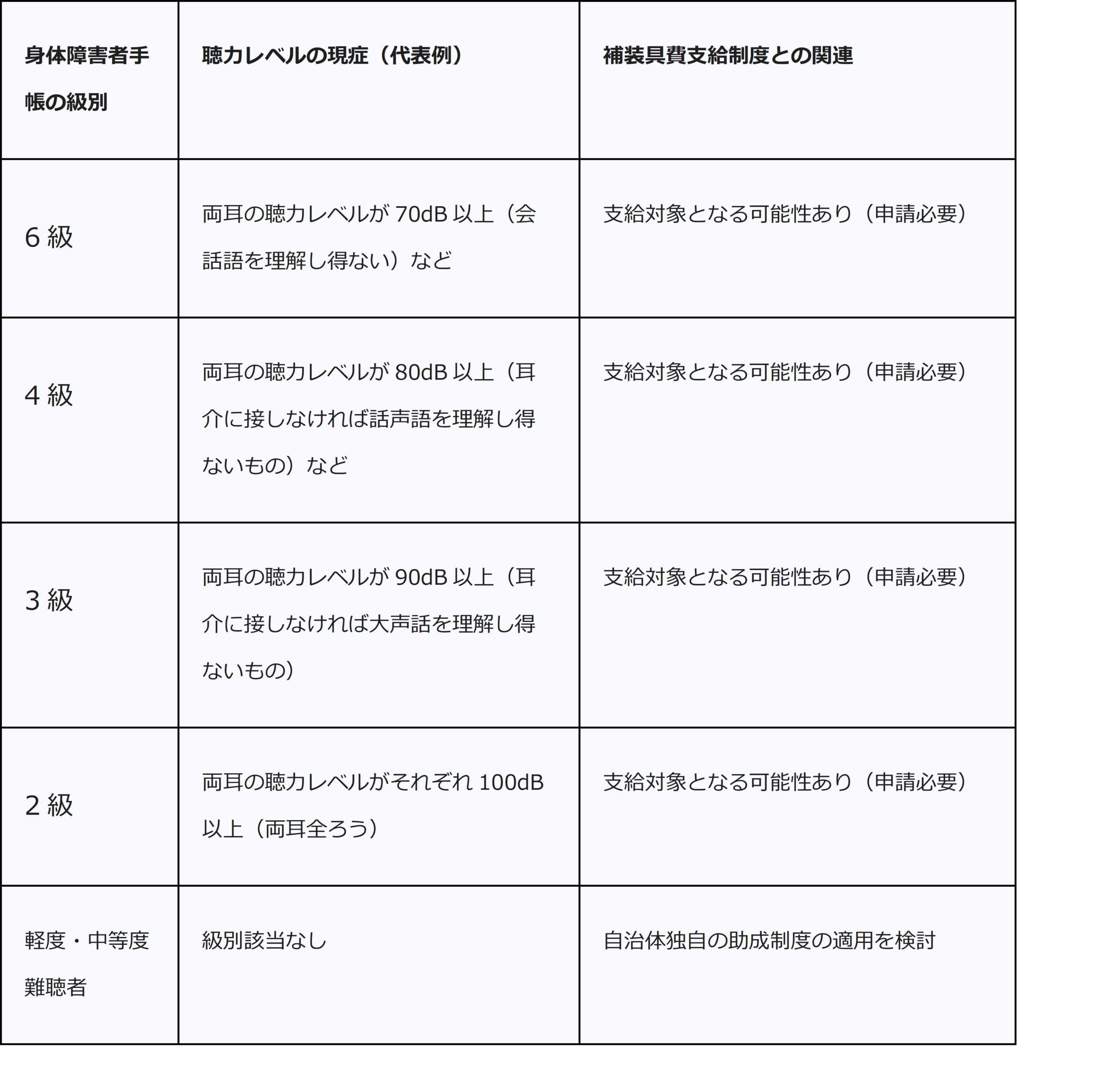 ※身体障害者手帳(聴覚)の級別と補装具費支給制度